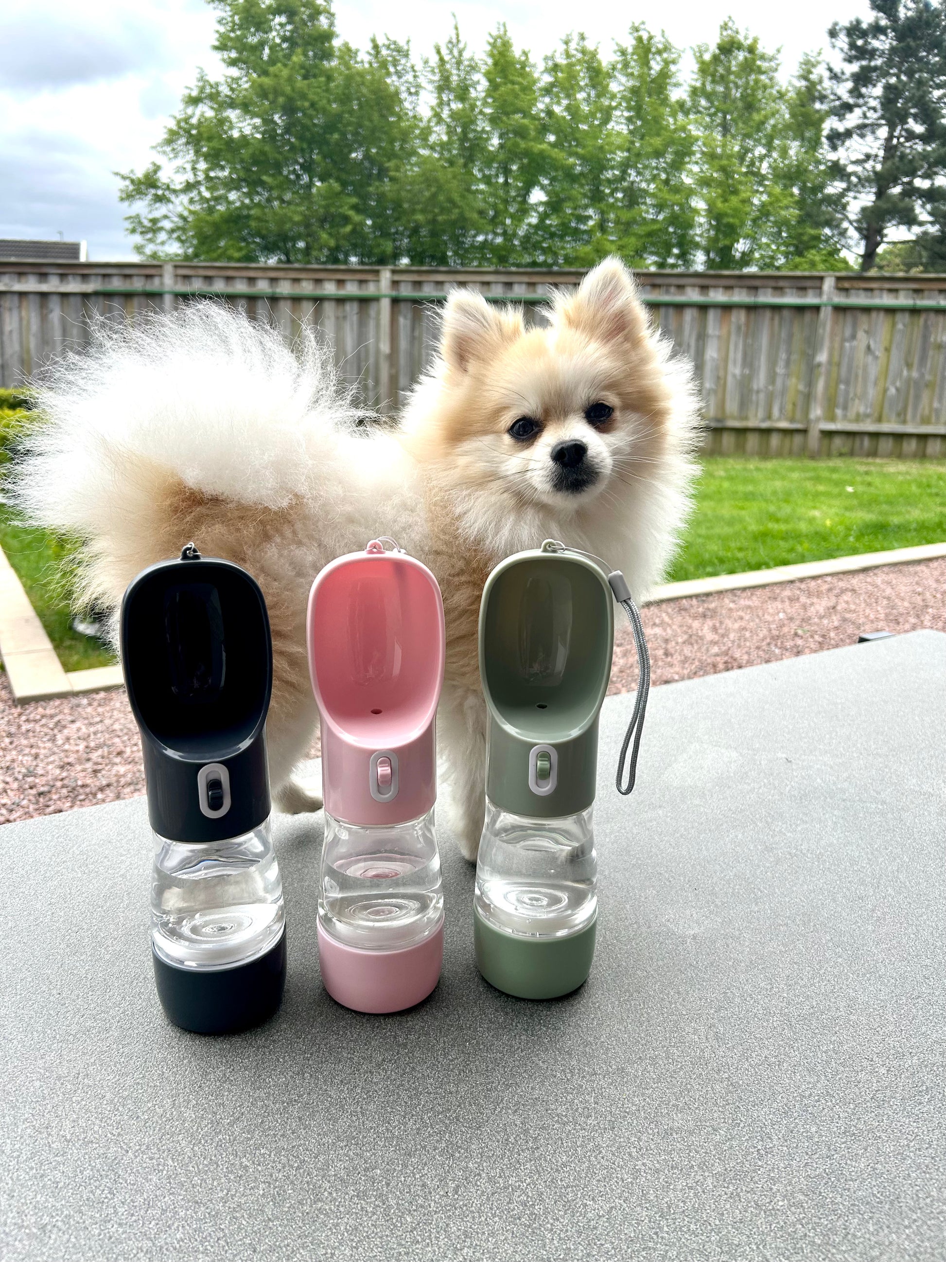 Bärbar vatten- & Matdispenser – 2-i-1 Reseflaska för Aktiva Djurägare